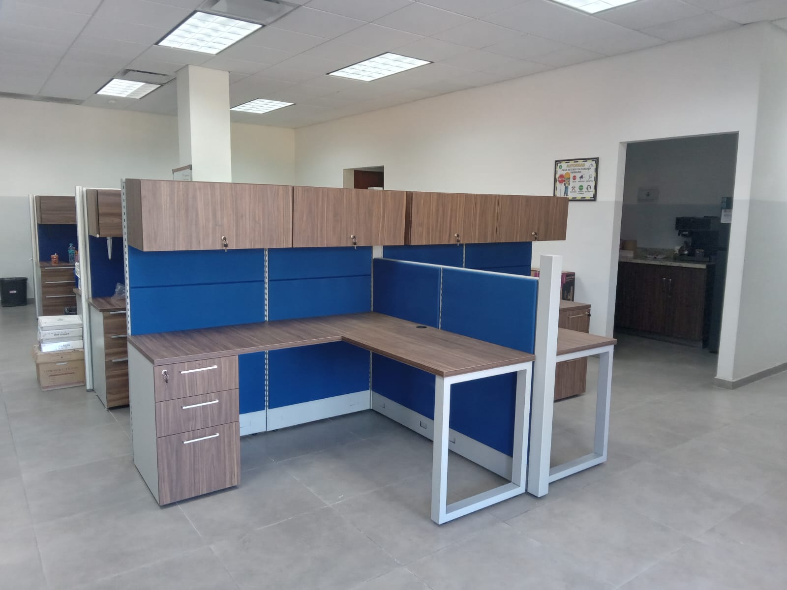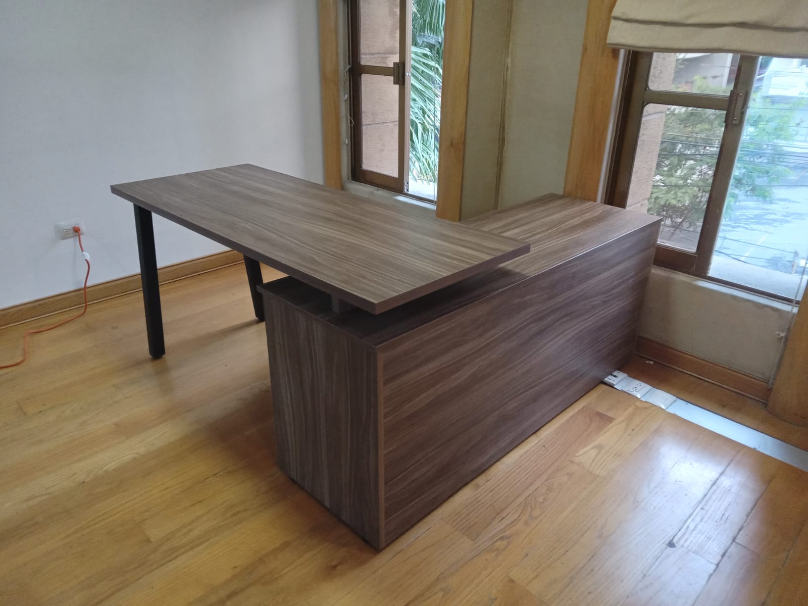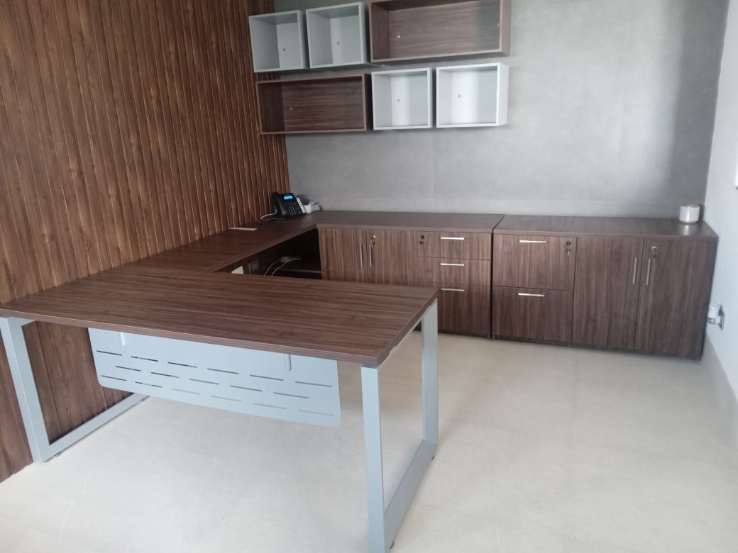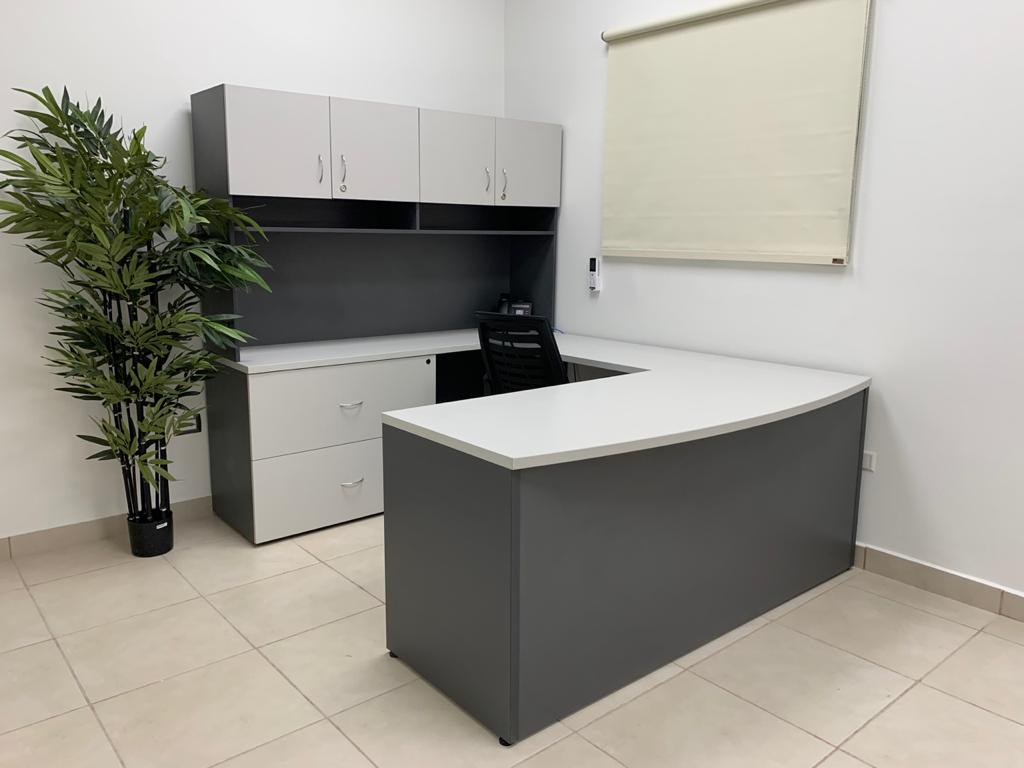 Módulo Ejecutivo (Izquierdo): El Módulo Ejecutivo (Izquierdo) es el núcleo del poder ejecutivo. Con una península rectangular, base metálica Málaga y canto plano de PVC, ofrece un espacio ergonómico y elegante.