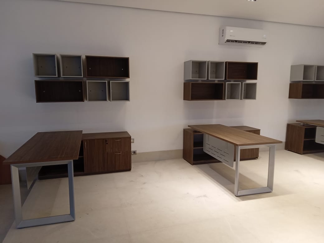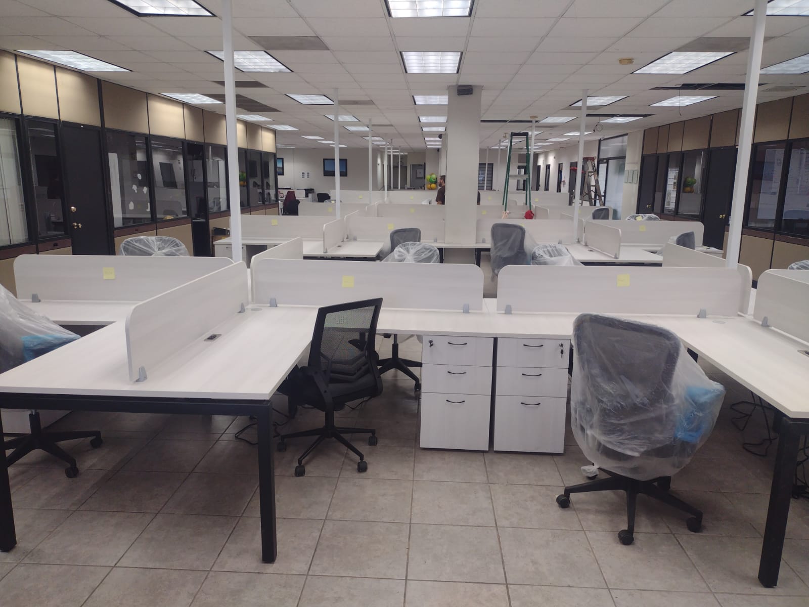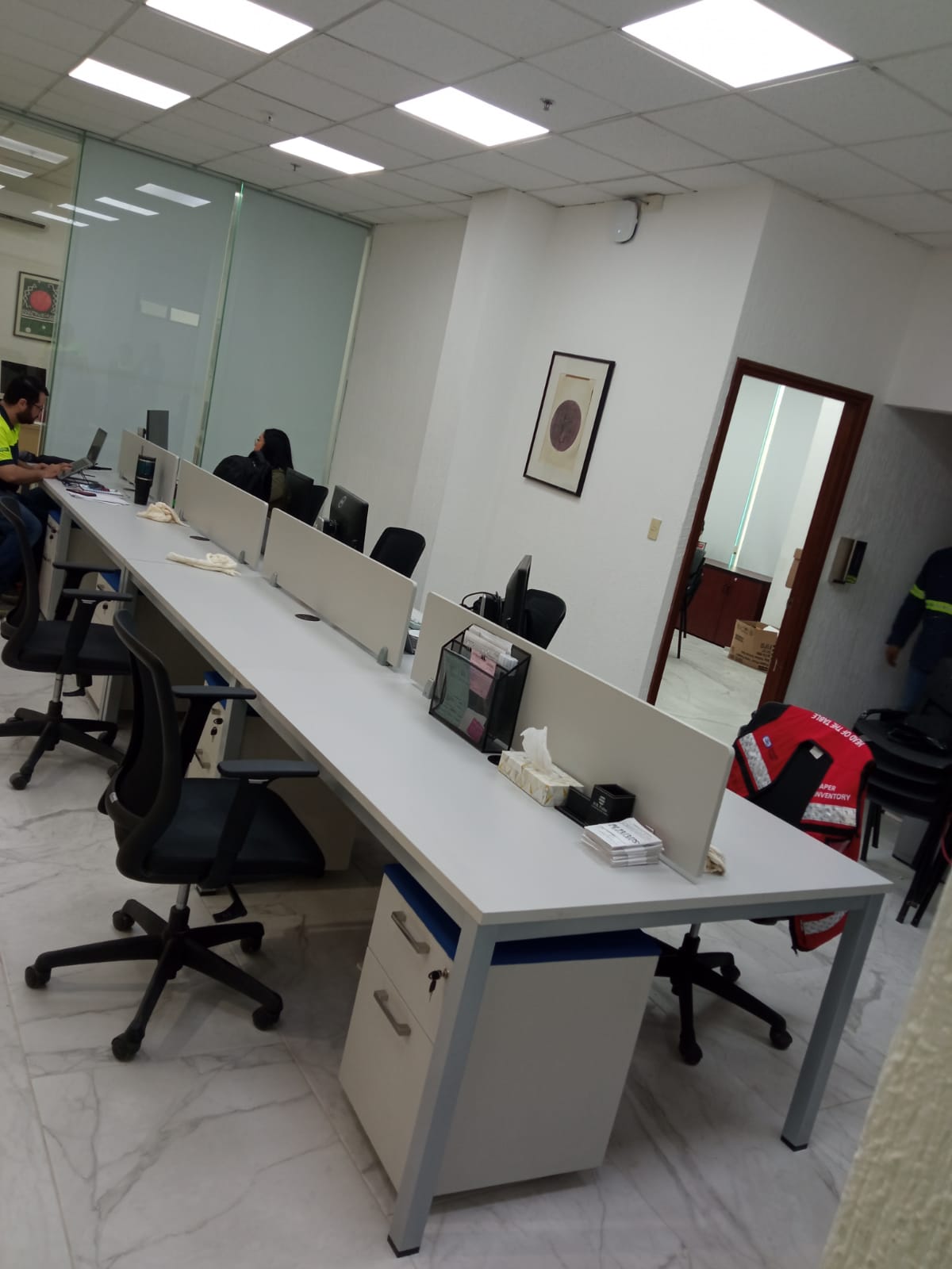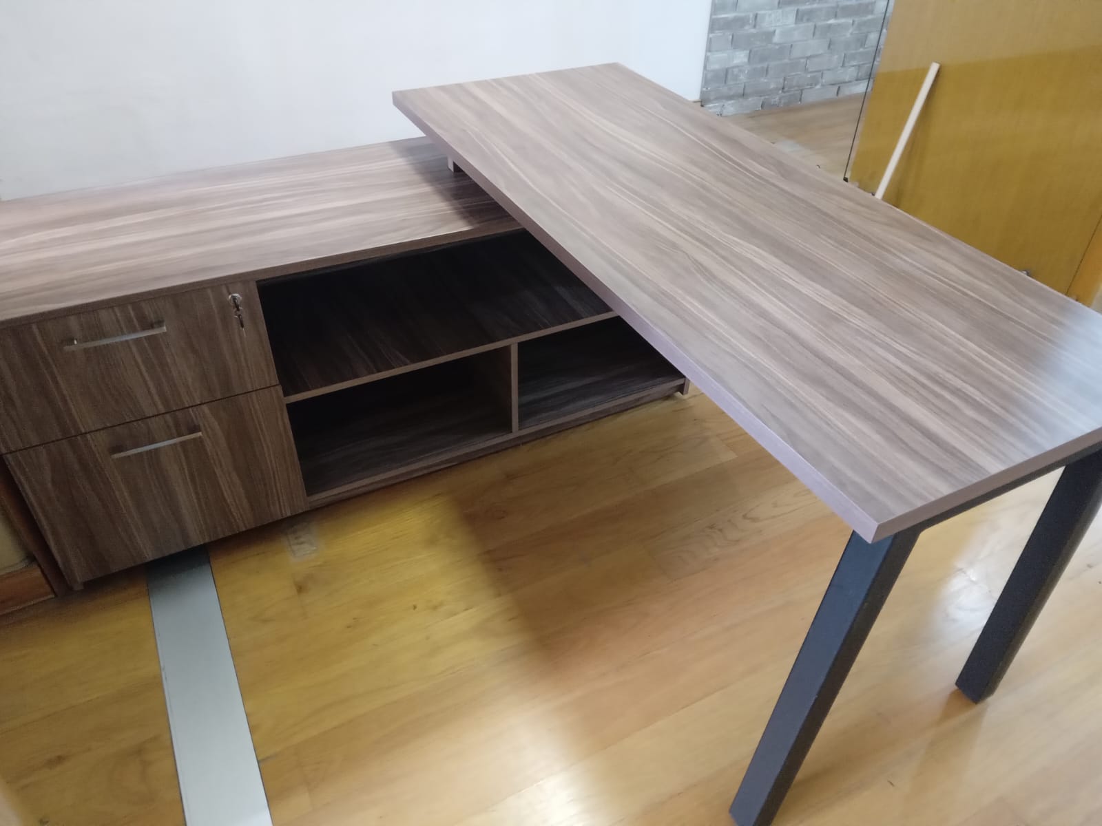 Módulo Ejecutivo (Izquierdo): El Módulo Ejecutivo (Izquierdo) es el núcleo del poder ejecutivo. Con una península rectangular, base metálica Málaga y canto plano de PVC, ofrece un espacio ergonómico y elegante.
