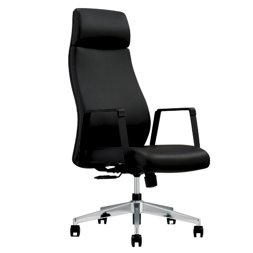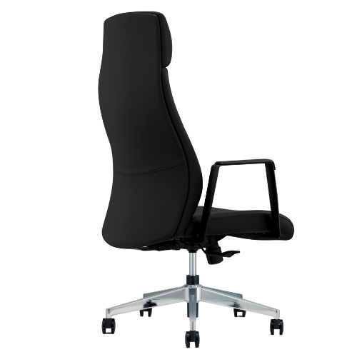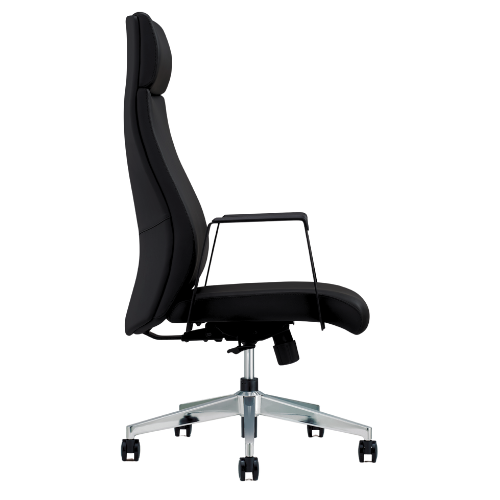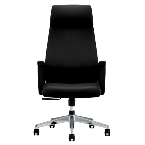 Cabecera y Respaldo poliuretano inyectado tapizado en vinipiel soft Asiento poliuretano inyectado de 6cm Brazos metálicos fijos con pad suave Base metálica cromada de 350mm de radio Mecanismo tipo Synchro multiposiciones Rodaja nylon