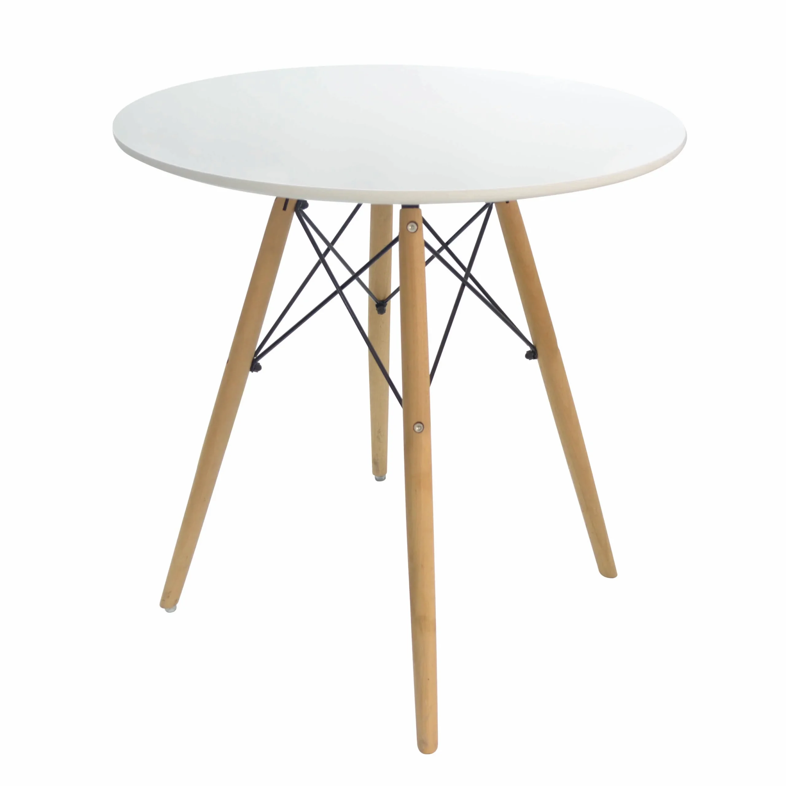 Mesa de comedor Cubierta fabricada en MDF Cuatro patas de madera Regatones en cromo